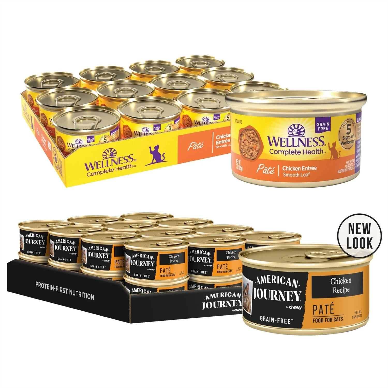 American Journey Pate Chicken Recipe Grain-Free Canned Cat Food & Wellness Complete Health Pate Chicken Entree Grain-Free Natural Canned Cat Food