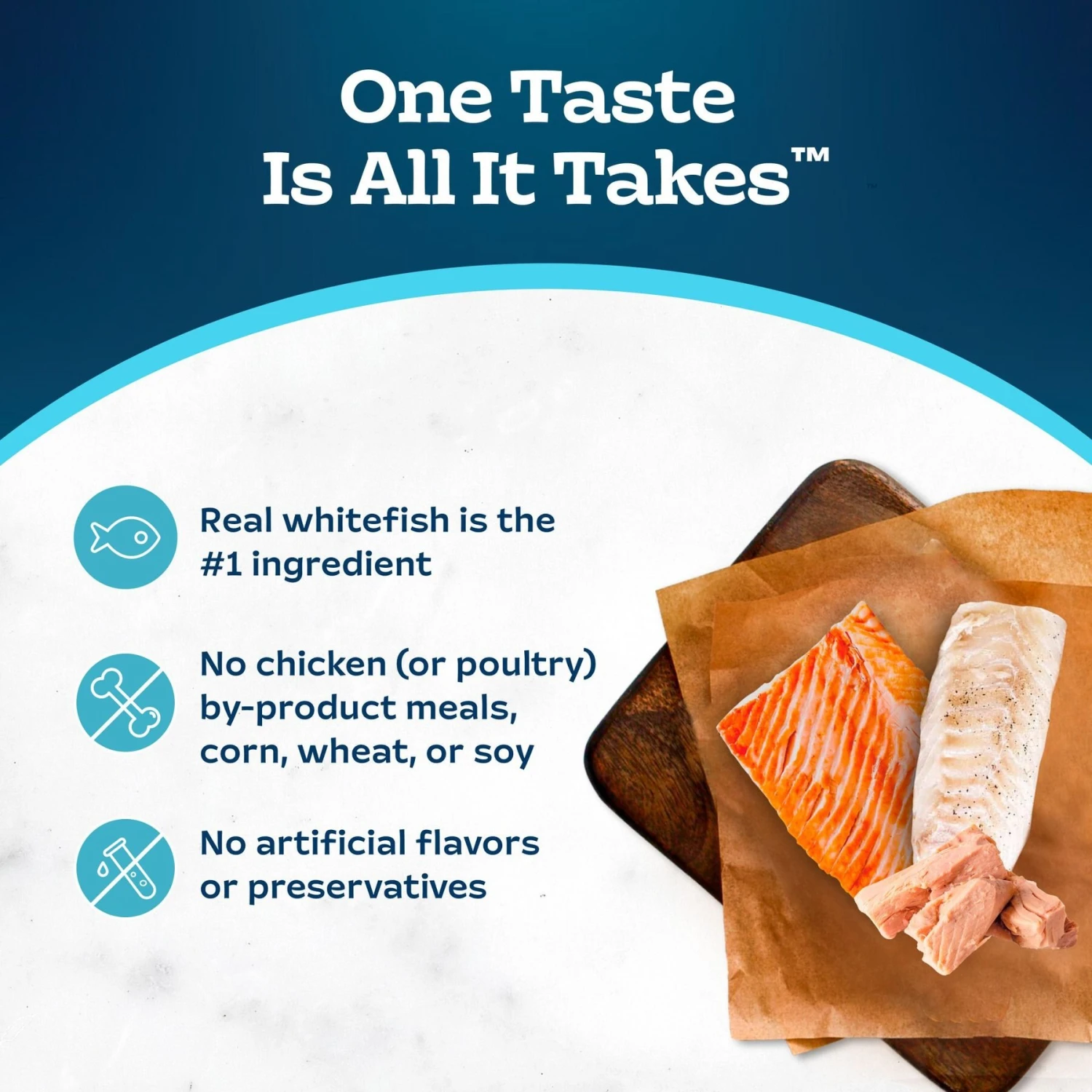 - The first ingredient in this Blue Buffalo paté cat food variety pack is high-quality whitefish or salmon your cat will love.