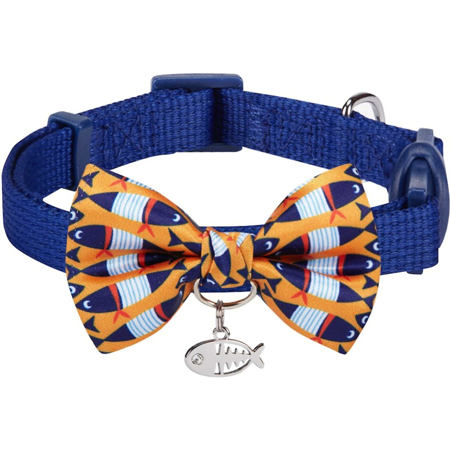 Blueberry Pet Fish Print Handmade Breakaway Bow Tie Personalized Cat Collar