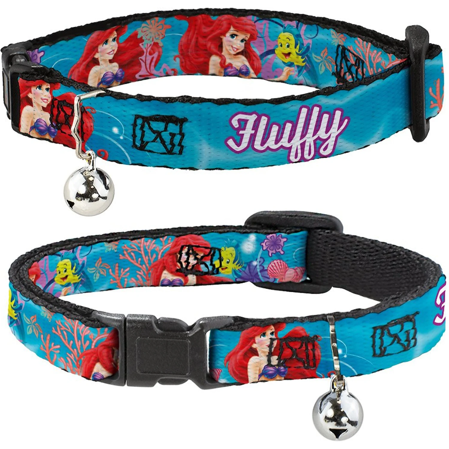 Buckle-Down Disney Ariel & Flounder Vivid Underwater Poses Personalized Breakaway Cat Collar With Bell