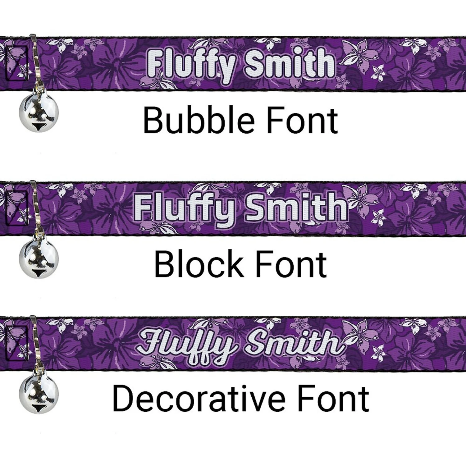 Buckle-Down Personalized Breakaway Cat Collar With Bell, Hibiscus Collage