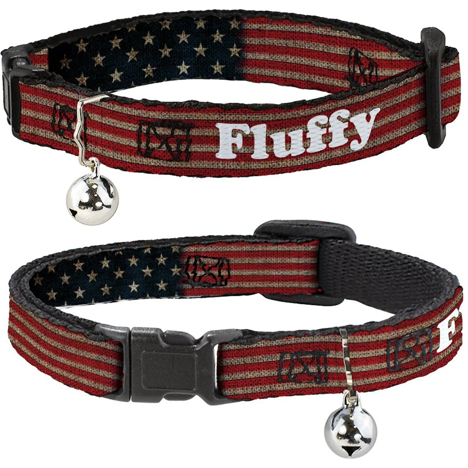 Buckle-Down Personalized Breakaway Cat Collar With Bell, Vintage US Flag Stretch