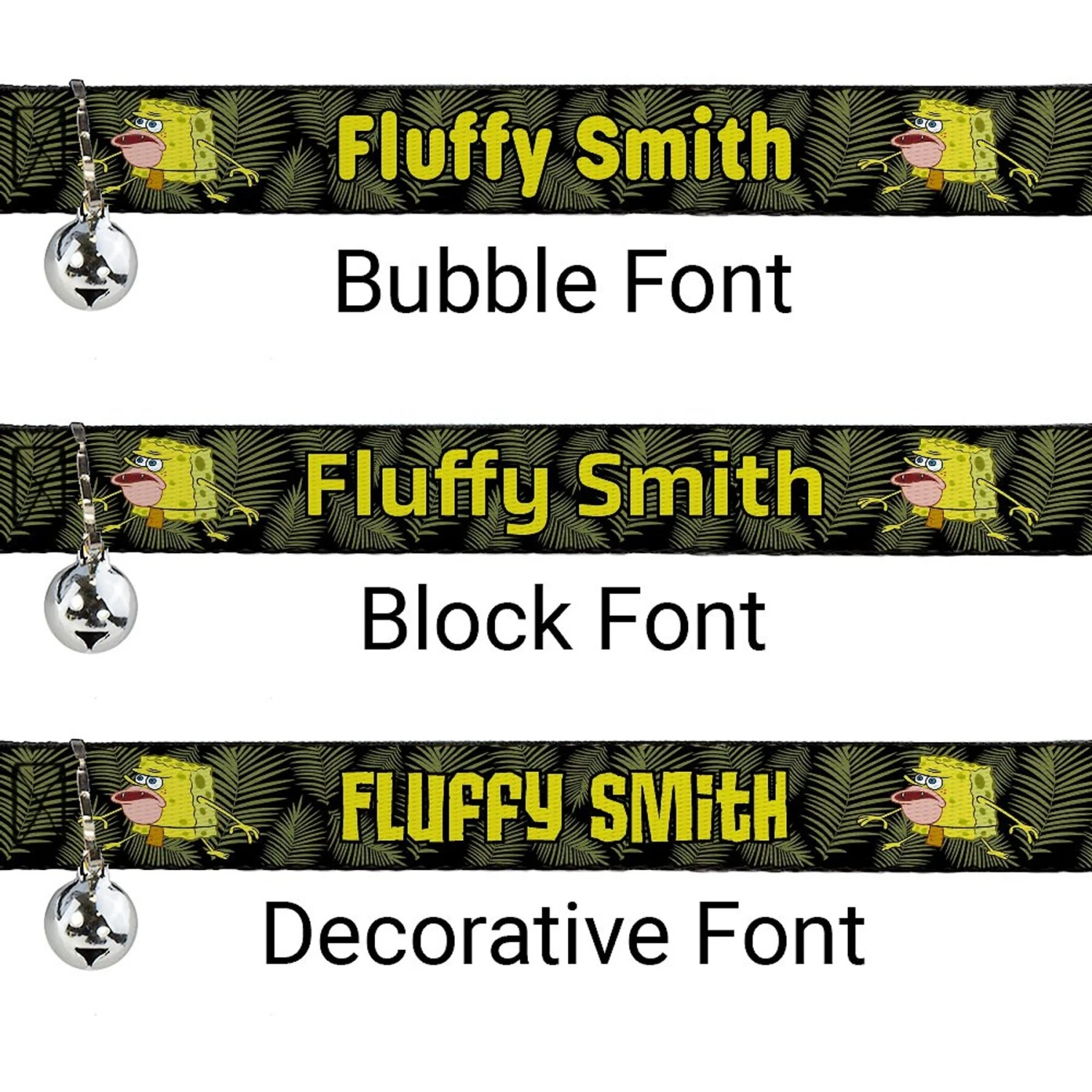 Buckle-Down Spongebob Squarepants Primitive Sponge Pose & Leaves Personalized Breakaway Cat Collar With Bell
