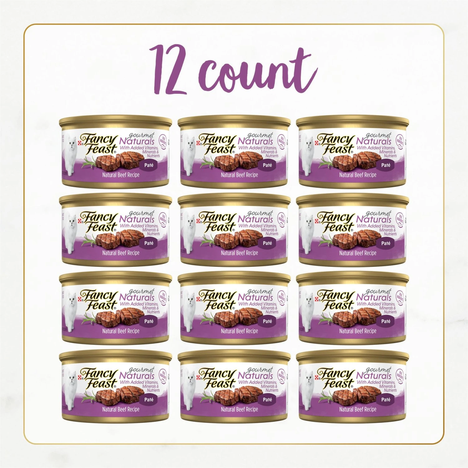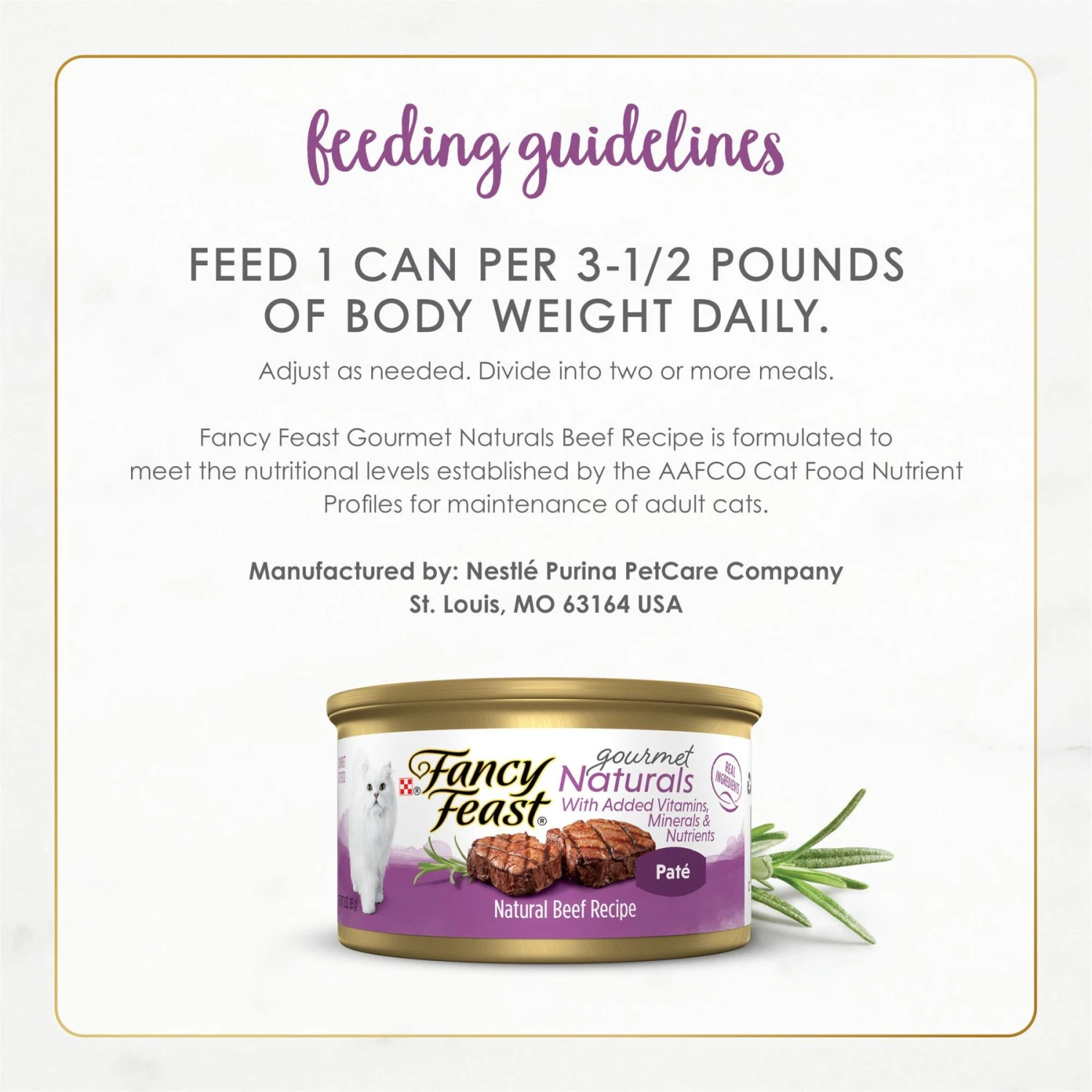 Fancy Feast Gourmet Naturals Beef Recipe Pate Canned Cat Food, 3-oz, Case Of 12