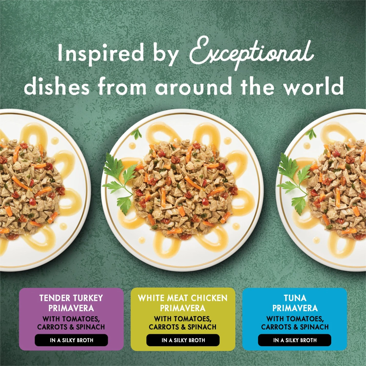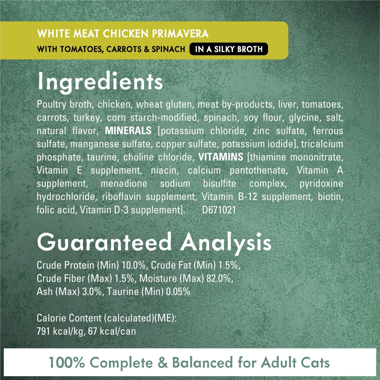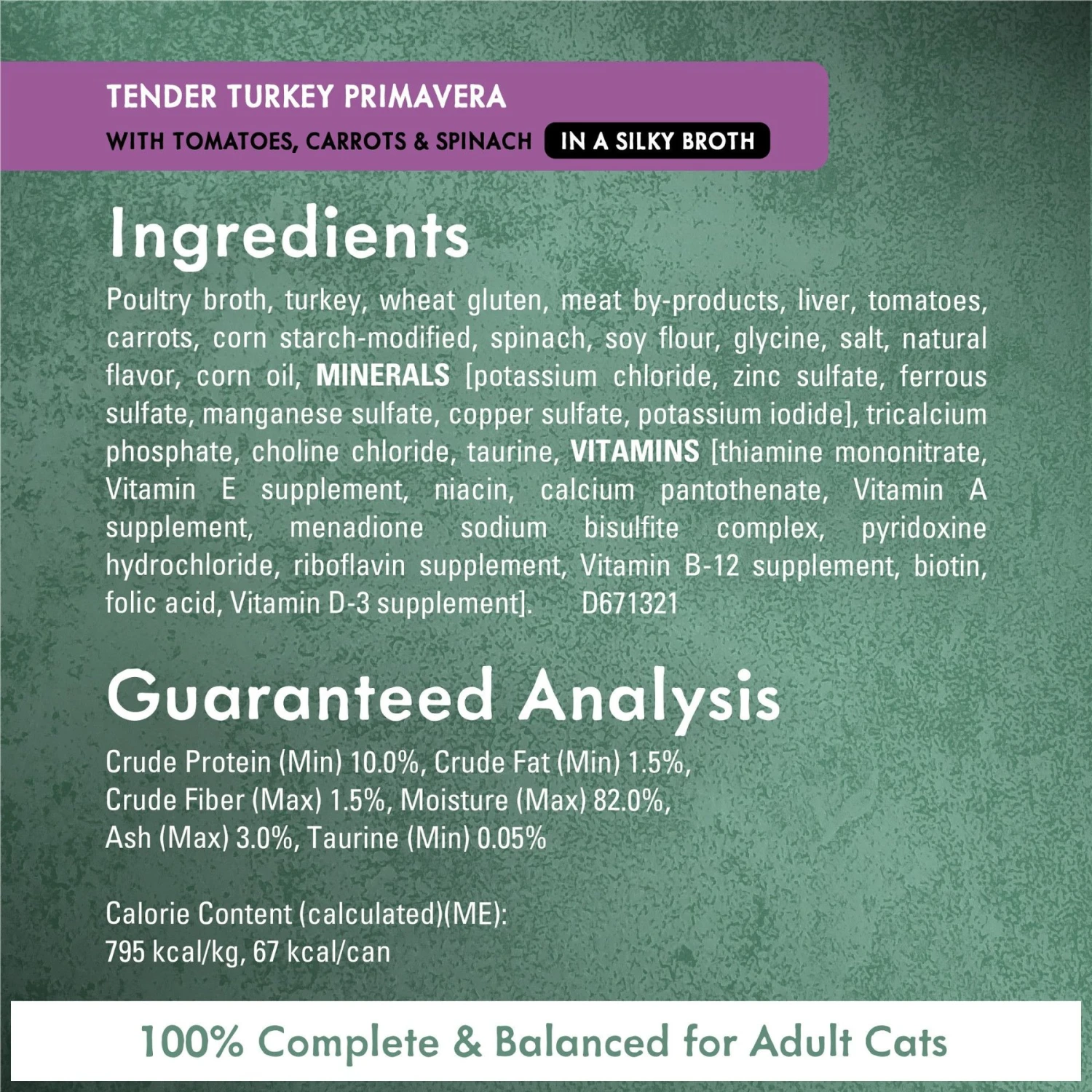 - Crafted with real, high-quality ingredients, including real chicken, turkey or tuna with tomatoes, carrots and spinach in a silky Fancy Feast cat food broth.