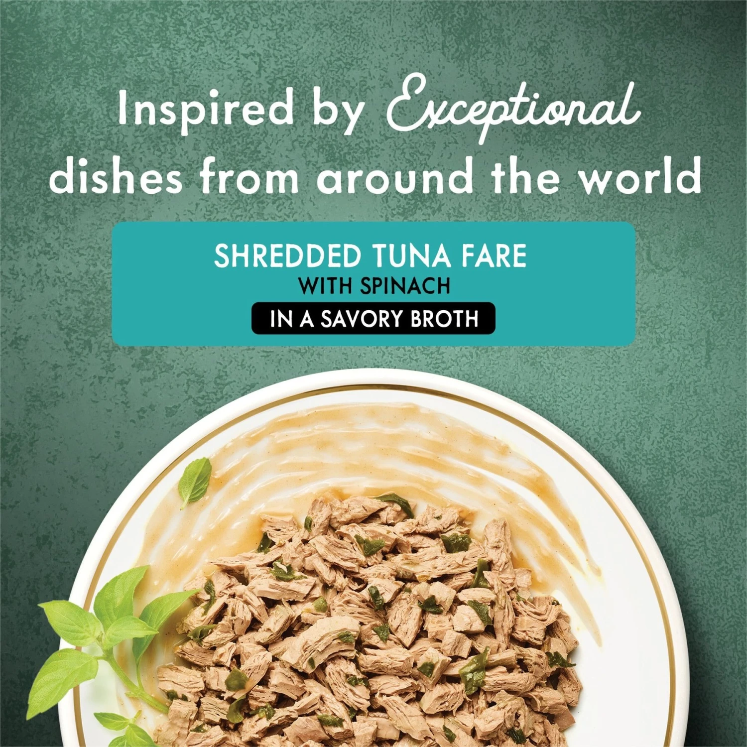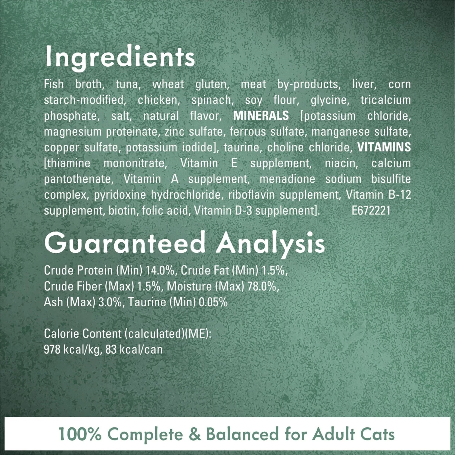 - Crafted in partnership with our expert chefs and nutritionists with real, high-quality ingredients, including real tuna with spinach in a savory cat food broth.