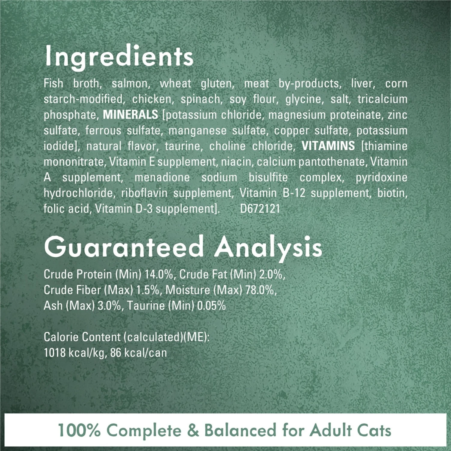 - Crafted in partnership with our expert chefs and nutritionists with real, high-quality ingredients, including real salmon with spinach in a savory cat broth.