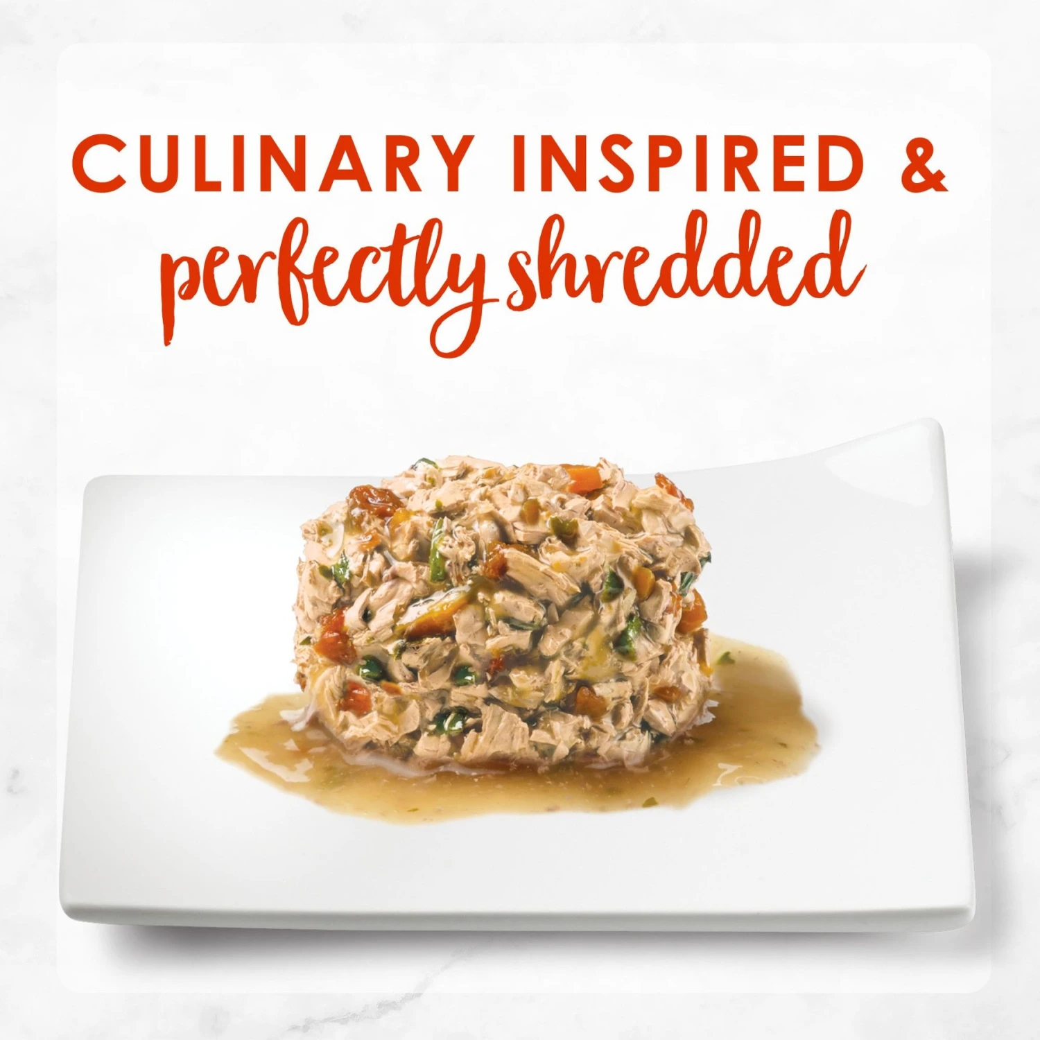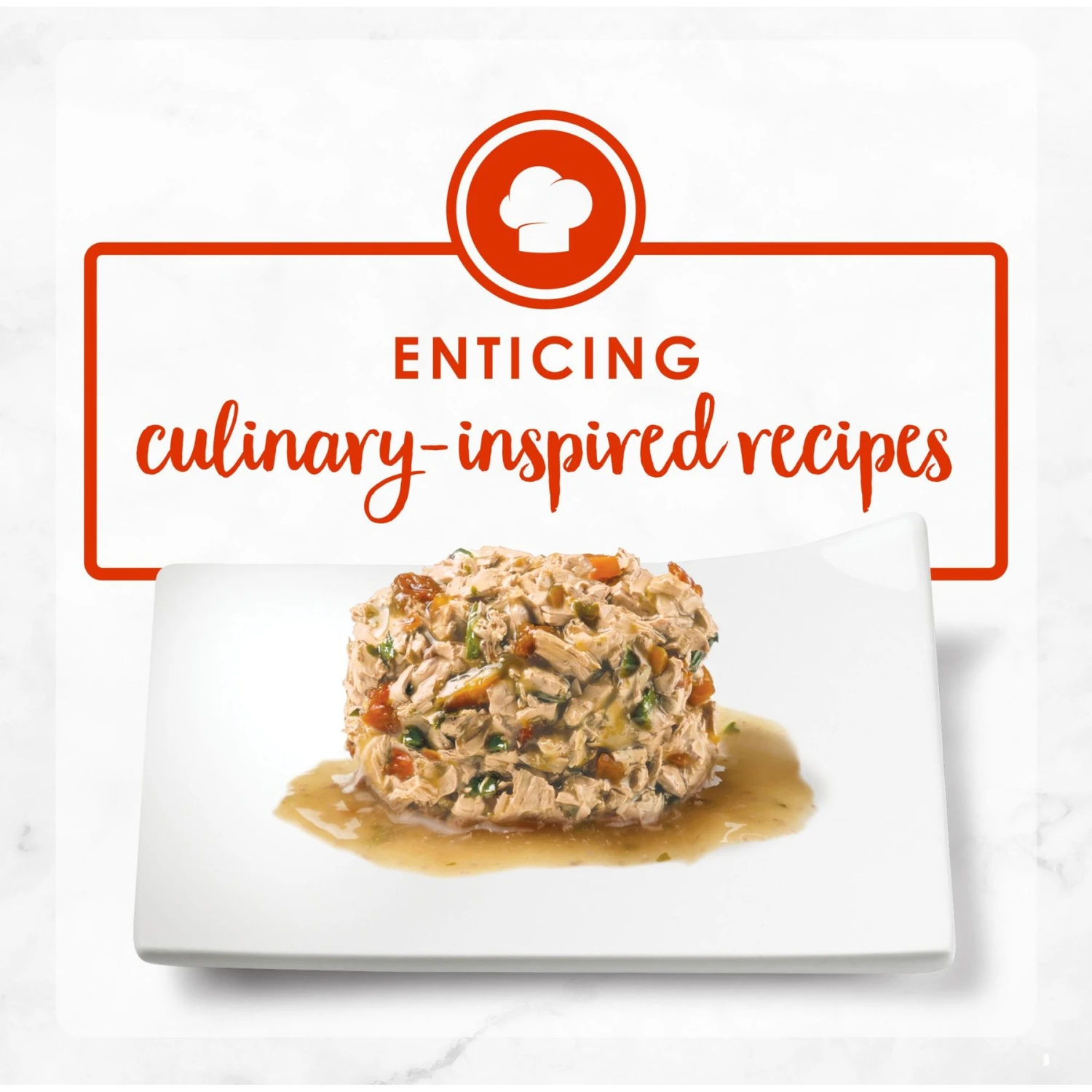 - Bistro-inspired wet cat food is filled with high-protein nutrition and features real chicken and veggies in sauce.
