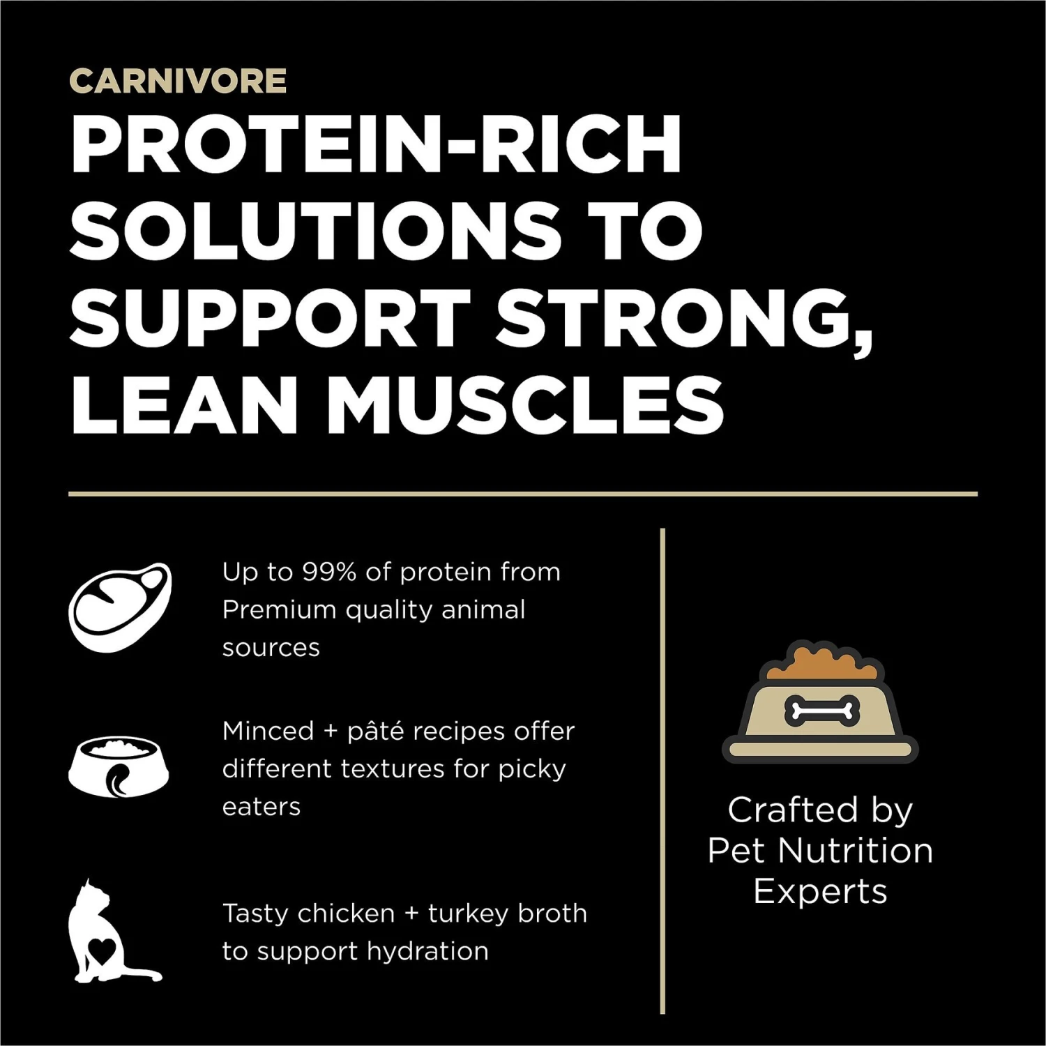 - The whisker-licking chicken and turkey broth are great sources of moisture and makes the minced wet cat food extra tempting to finicky felines. Plus, it can help hydrate cats who avoid drinking water.