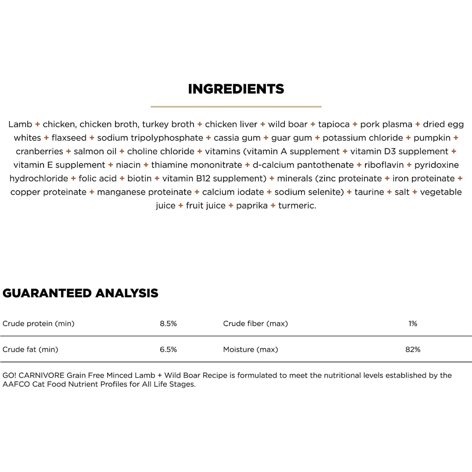 Go! Solutions Carnivore Grain-Free Minced Lamb + Wild Boar Cat Food