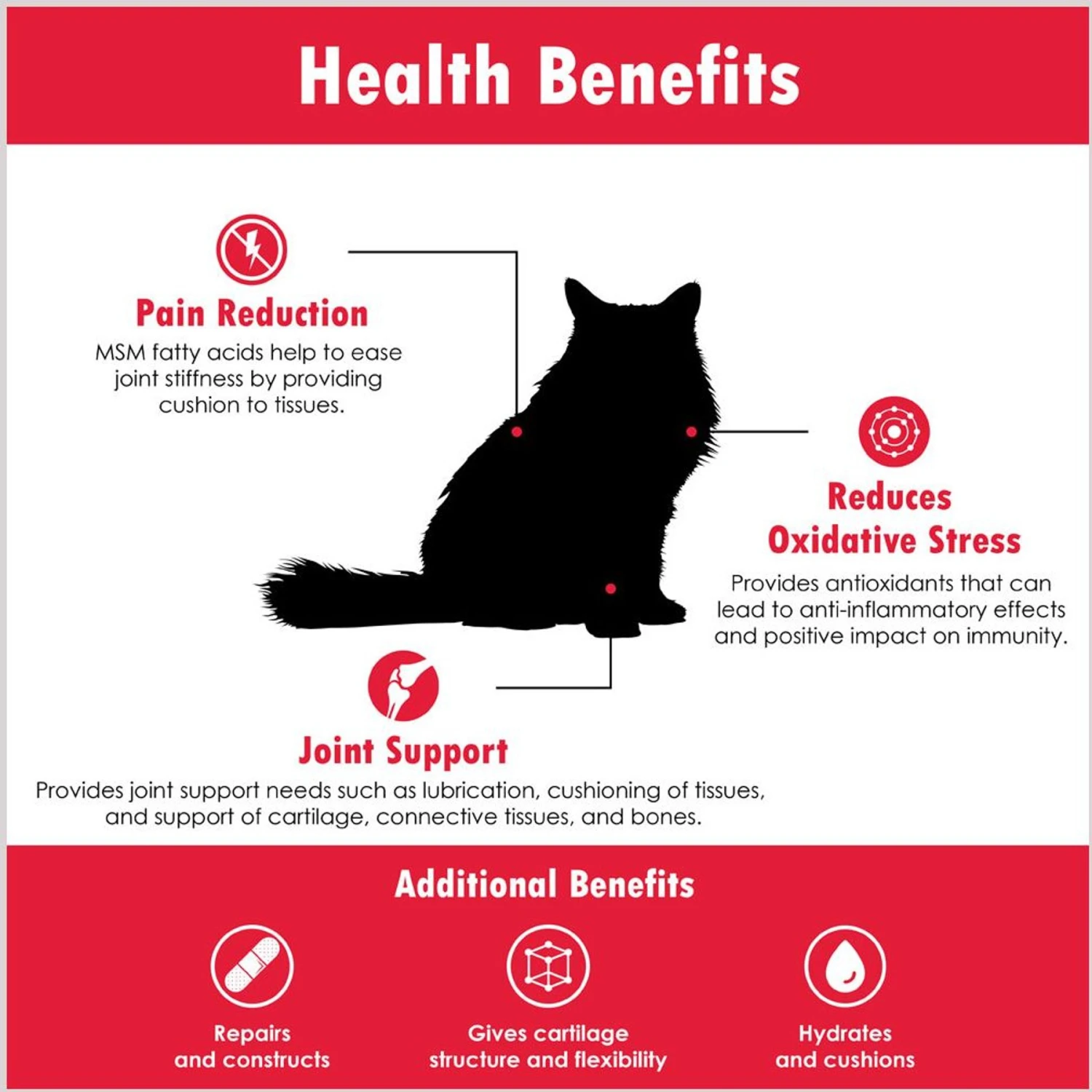 - Purr-fect for kitties that need extra joint support–like lubrication and cushioning.