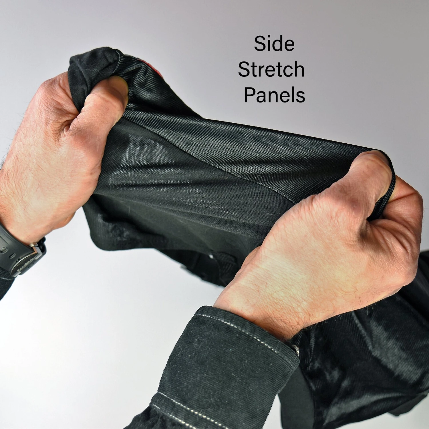 - Stretch panels on each side ensure a comfortable fit and make it easy to get on and off your furry MVP.