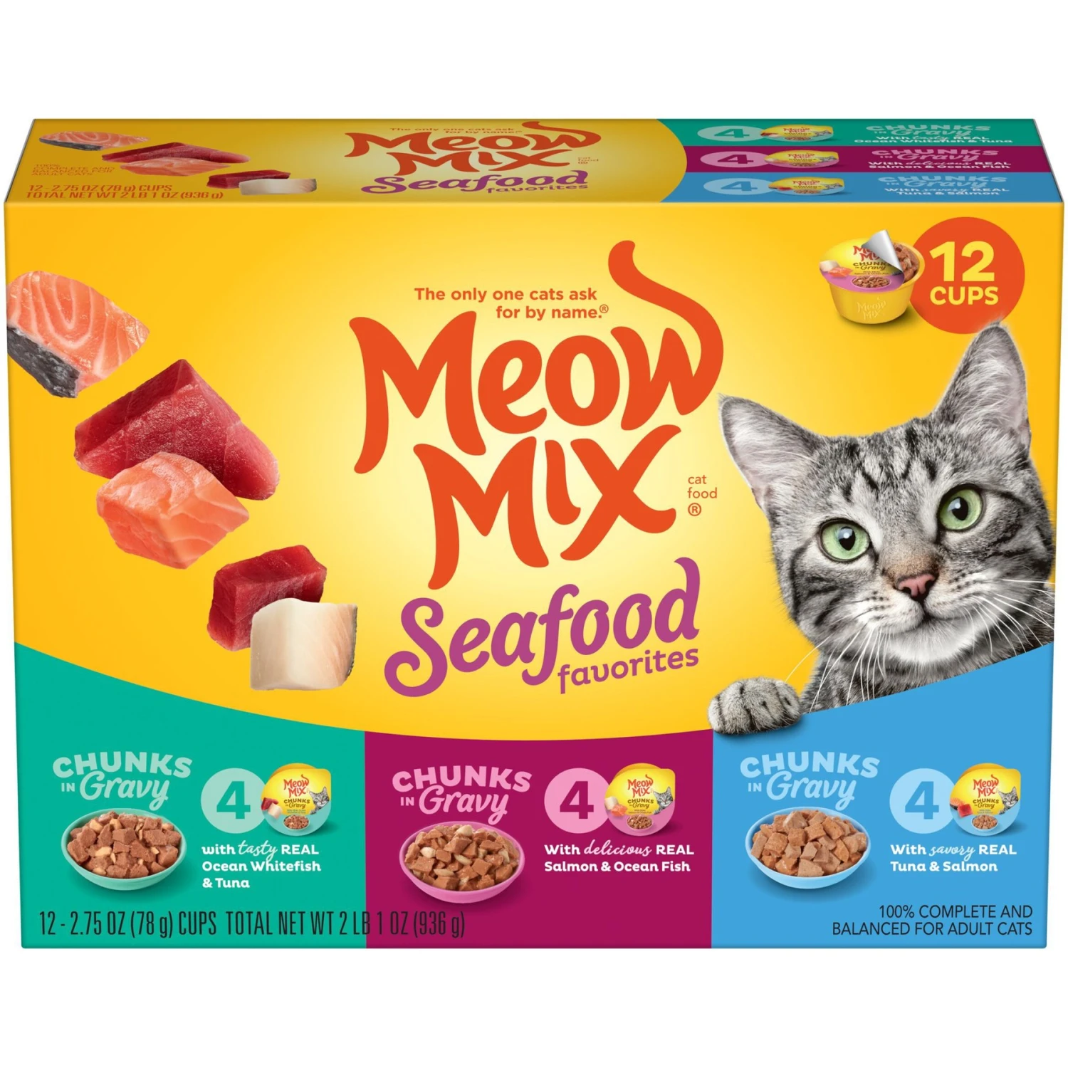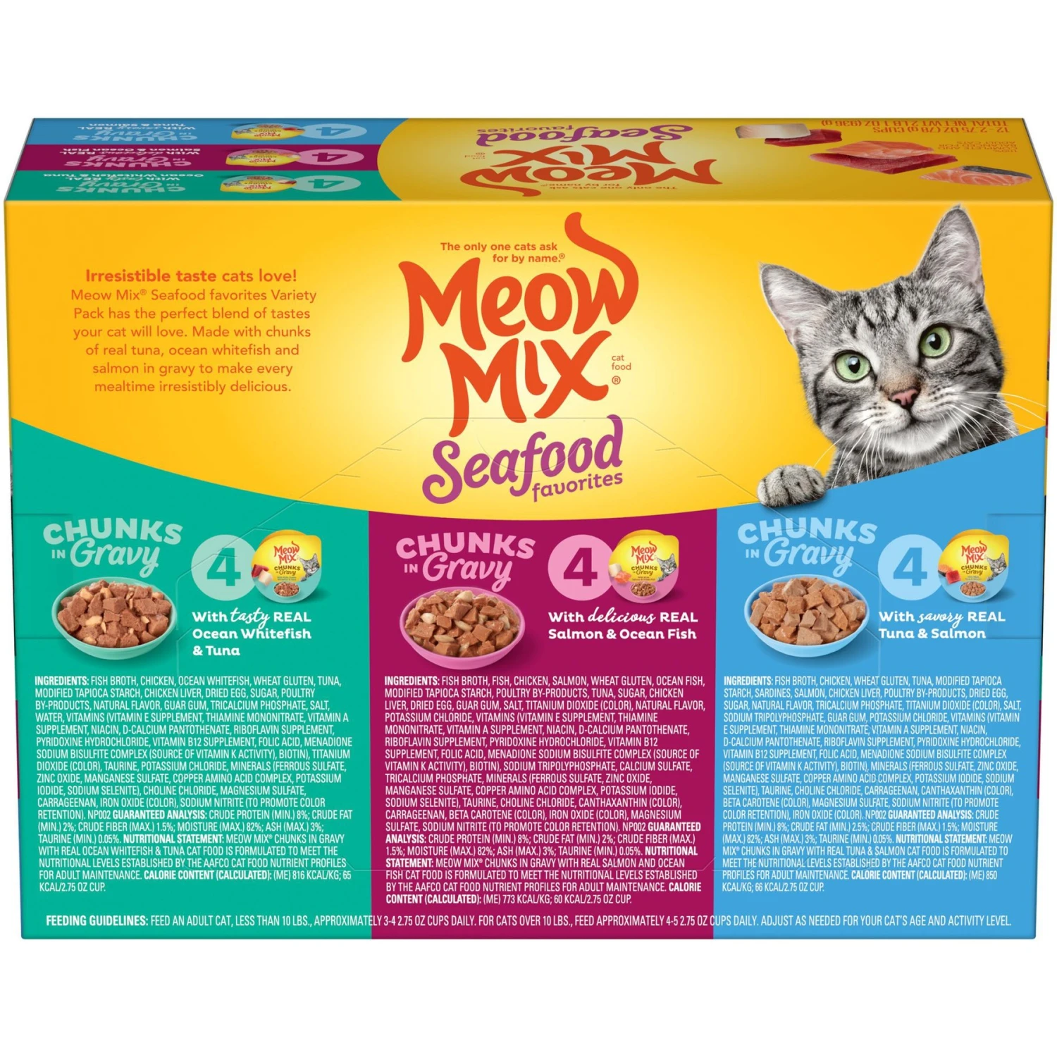 Meow Mix Savory Morsels Seafood Favorites Variety Pack Cat Food Trays