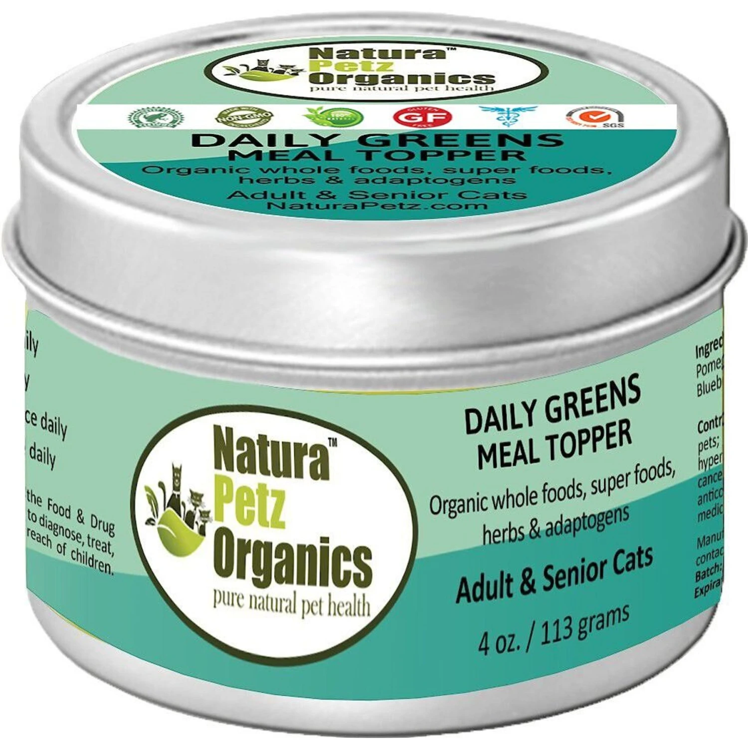 Natura Petz Organics Daily Greens Turkey Flavored Powder Immune Supplement For Cats, 4-oz Tin