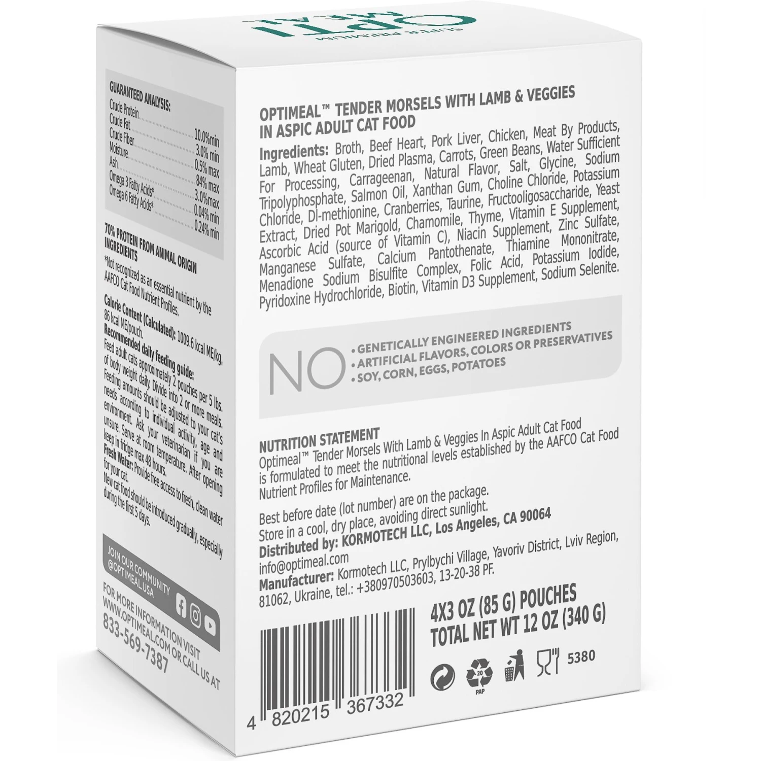 Optimeal Tender Morsels With Lamb & Veggies In Aspic Recipe Wet Cat Food, 3-oz Pouch, Case Of 24