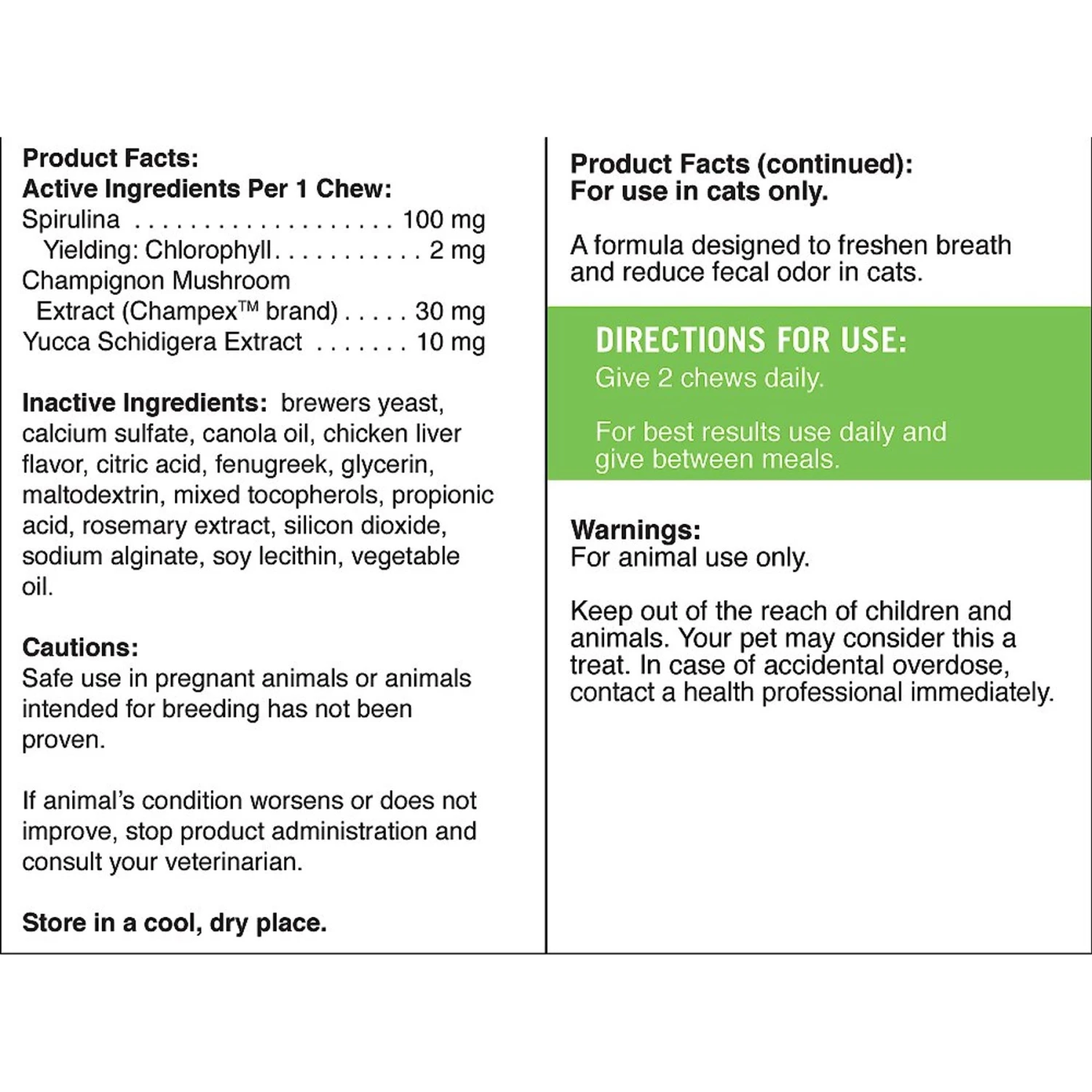 - Yucca Schidigera Extract has been shown to reduce the intensity of fecal order in cats by either altering the production or availability of hydrogen sulfide in the large intestine