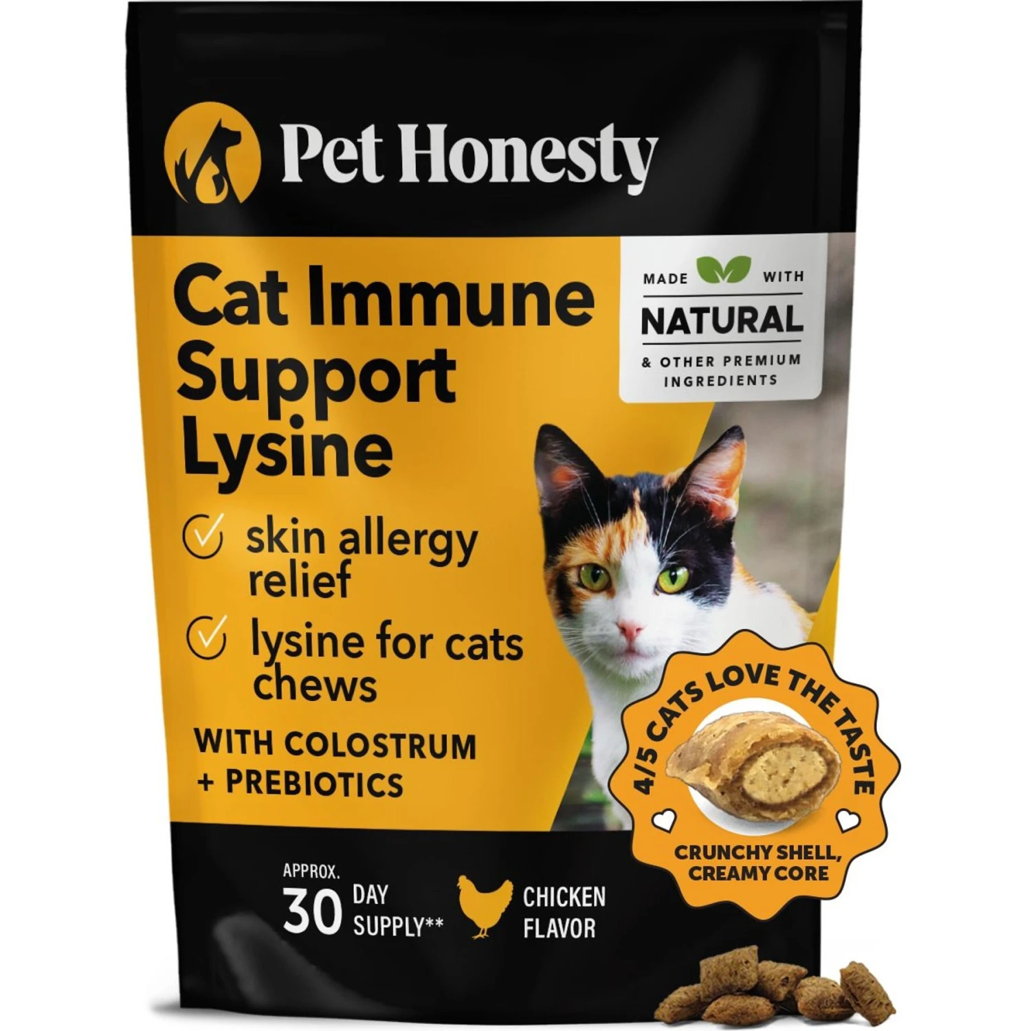 PetHonesty Dual Texture Immune Support Lysine Chews Supplement For Cats, 3.7-oz Bag