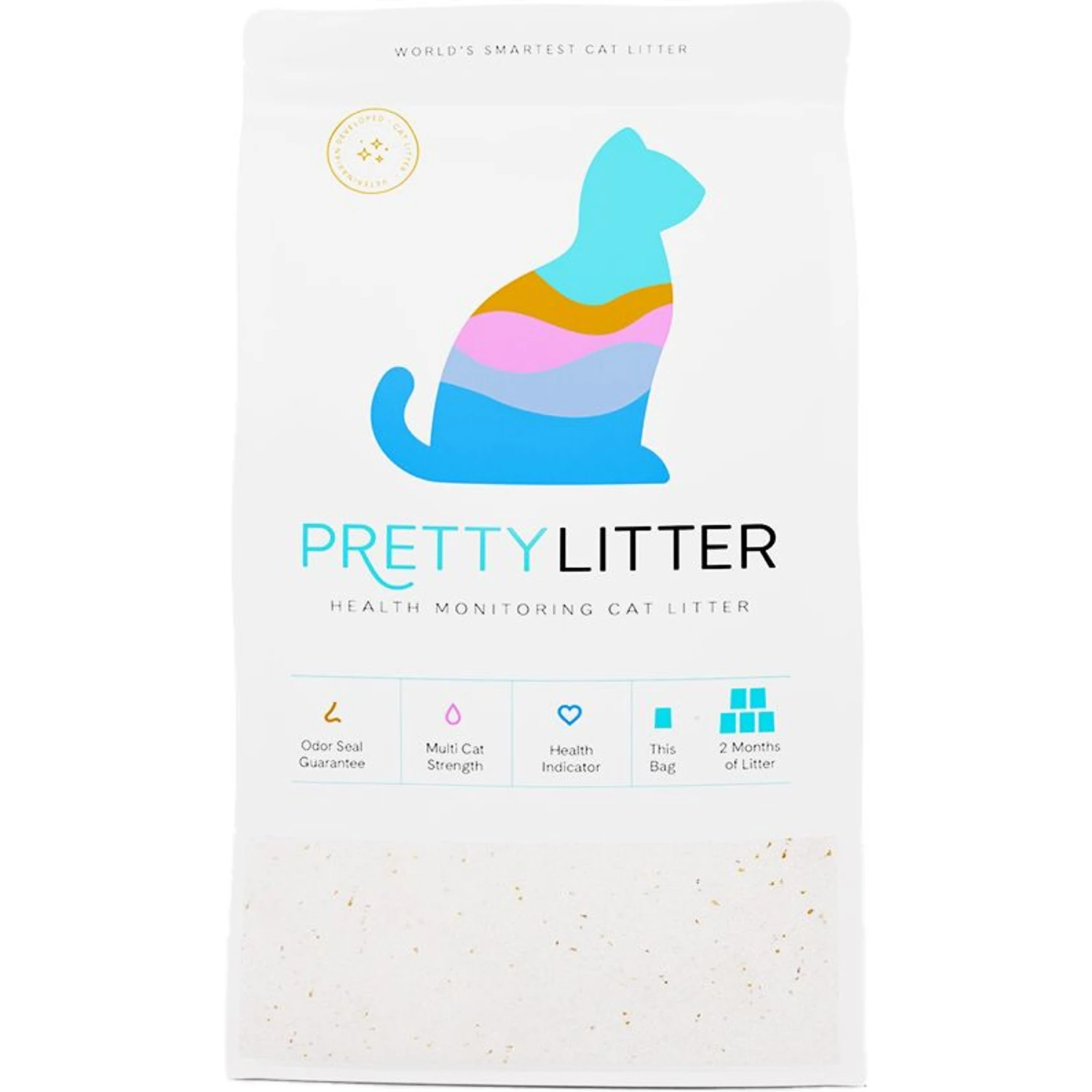 PrettyLitter Cat Litter, 8-lb bagโKeep an eye on your catโs health with PrettyLitter Cat Litter! Made with highly-absorbent crystals, this litter traps and eliminates odor without harmful perfumes. Its lightweight design makes it easy to scoop and pourโplus, the crystals absorb urine without clumping, so it’s even easier to dispose of it. PrettyLitter is low-dust, so pet parents with respiratory issues can rest easy every time they pour. Additionally, the litter changes color when it detects common health problems like urinary tract infections, bladder inflammation, urinary stones or blood in the urine. It is paw-fect for single or multicat households.