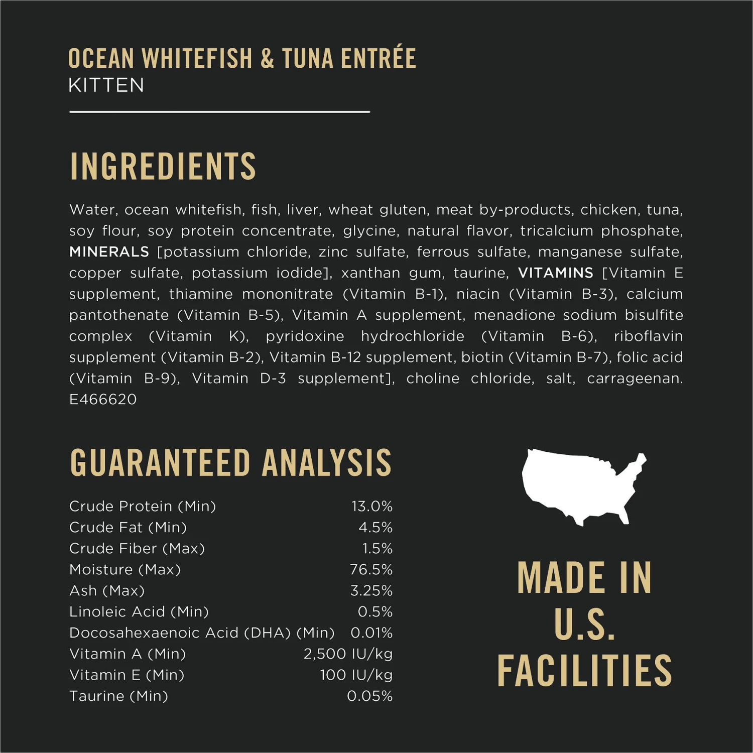 - These Purina Pro Plan wet kitten food selections are proudly manufactured at Purina-owned, U.S. facilities and checked for quality and safety.