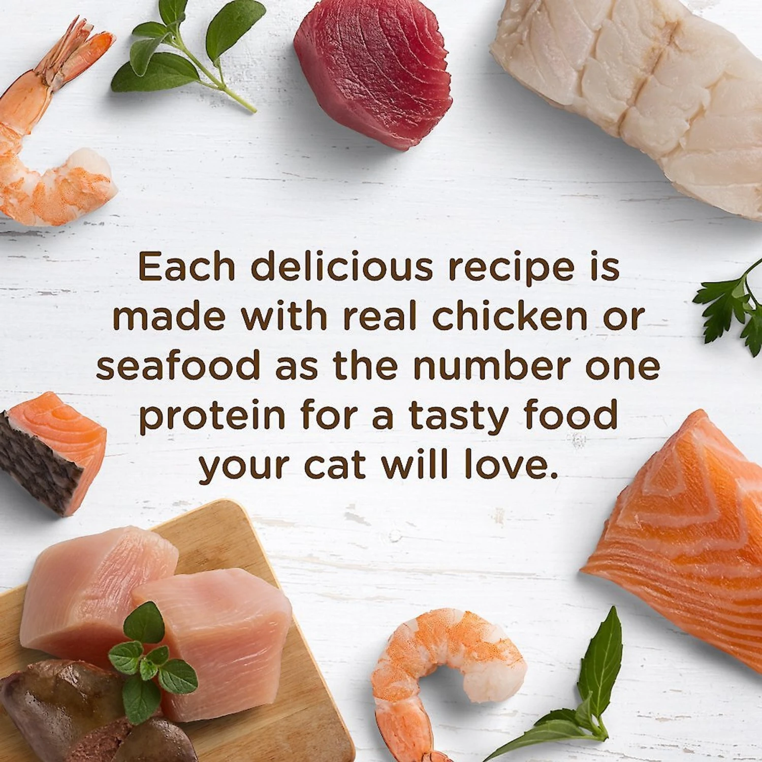 - Real chicken is the #1 ingredient in this wholesome cat food for any life stage. It’s complete and balance nutrition with added vitamins, minerals, and Taurine to support overall wellbeing.