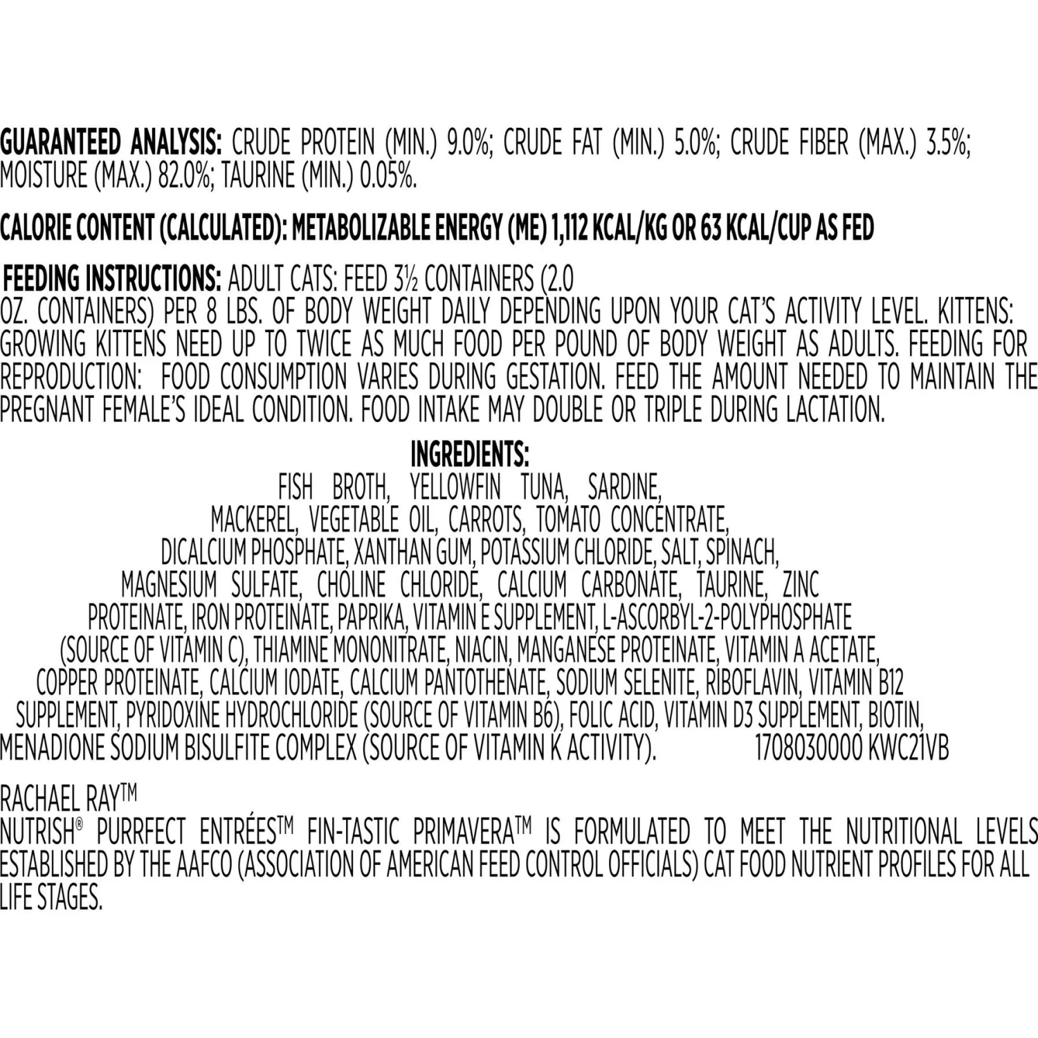 Rachael Ray Nutrish Purrfect Entrees Grain-Free Fin-Tastic Primavera With Yellowfin Tuna & Veggies In Savory Sauce Wet Cat Food