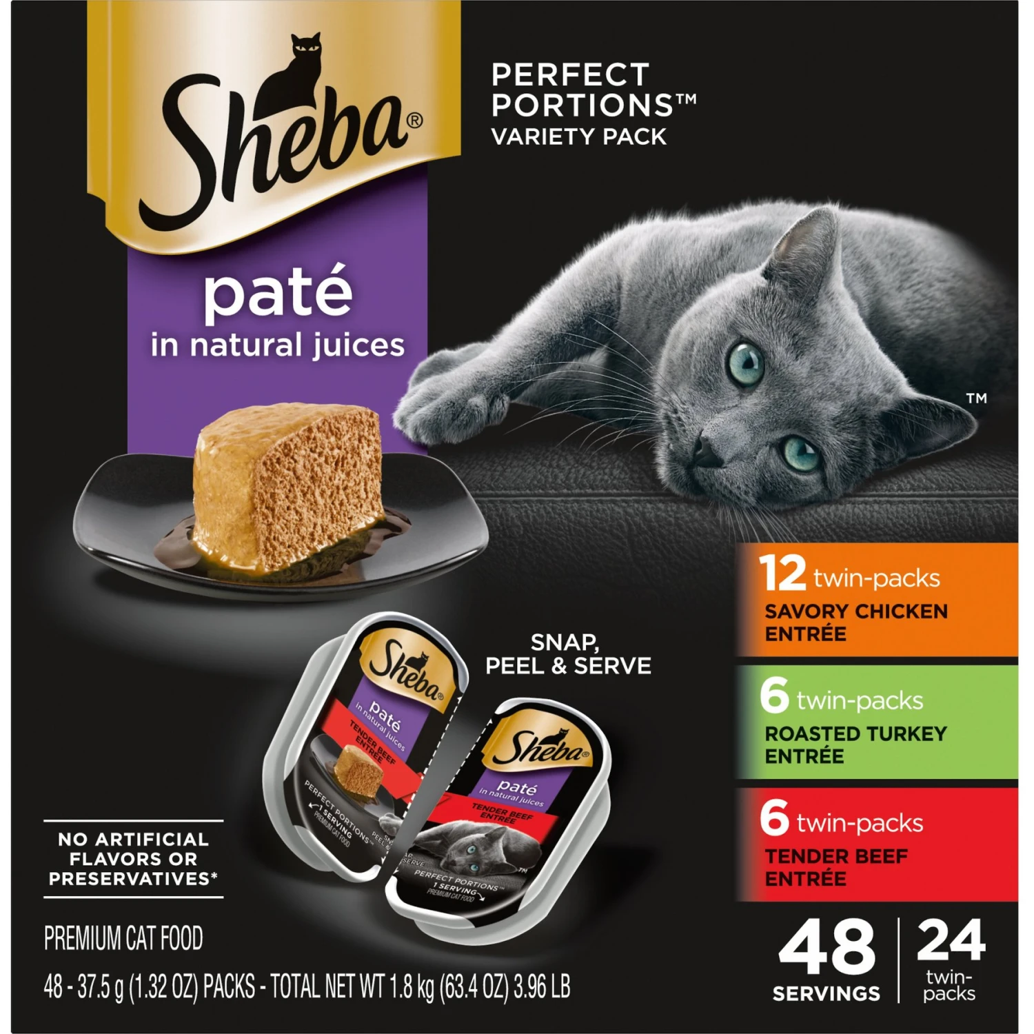 Sheba Perfect Portions Grain-Free Savory Chicken, Roasted Turkey & Tender Beef Pate Variety Pack Adult Wet Cat Food Trays