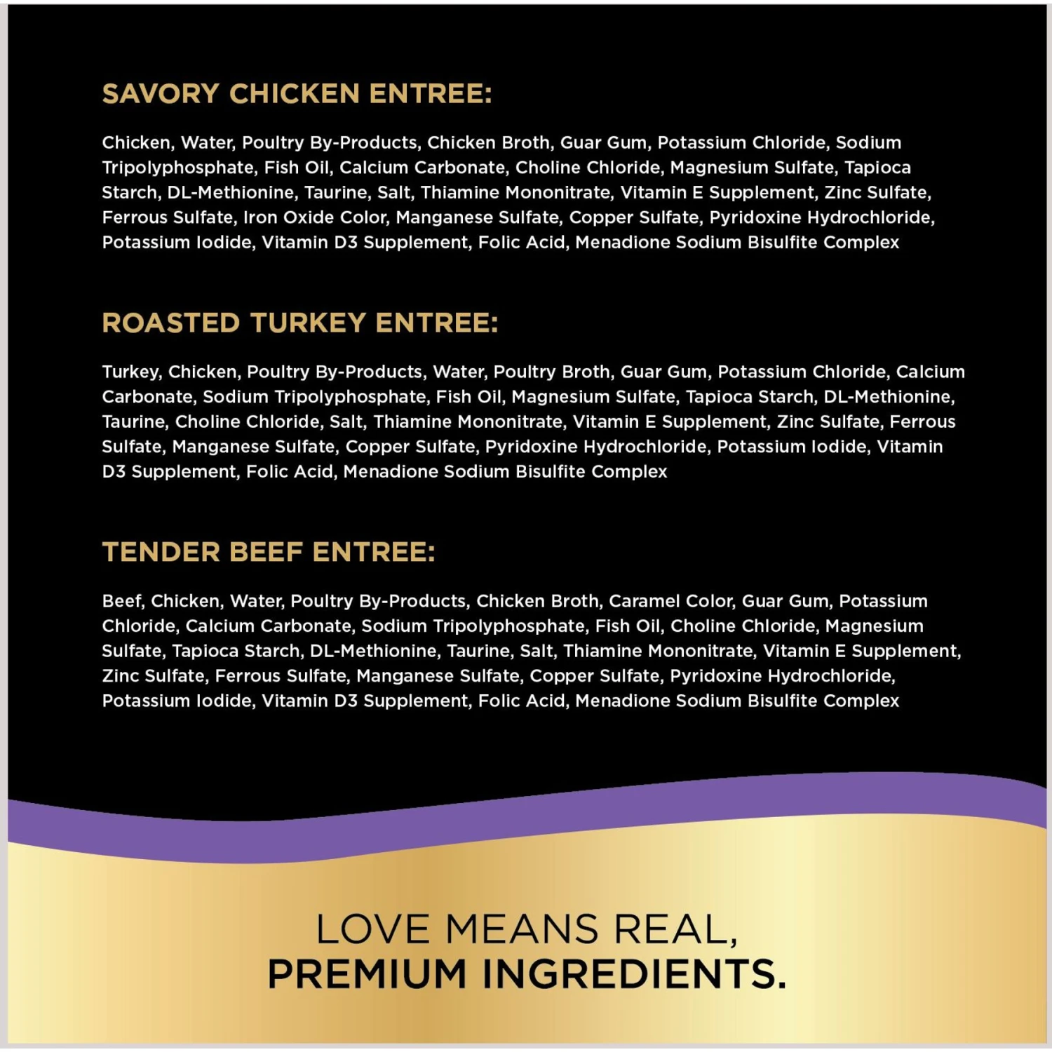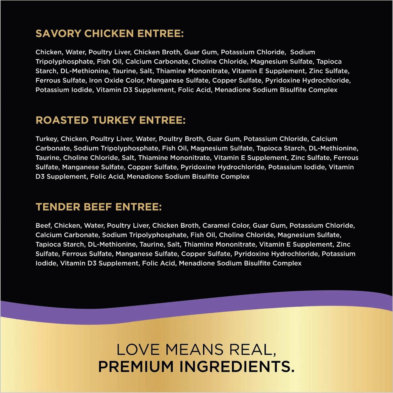 - Each formula is made with real ingredients like chicken, turkey and beef pate in natural juices.