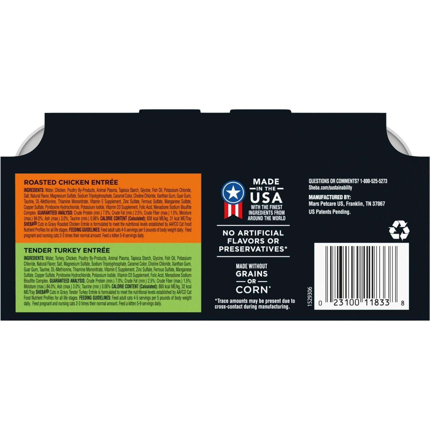 Sheba Perfect Portions Poultry Entrees Cuts In Gravy Variety Pack Adult Wet Cat Food Trays