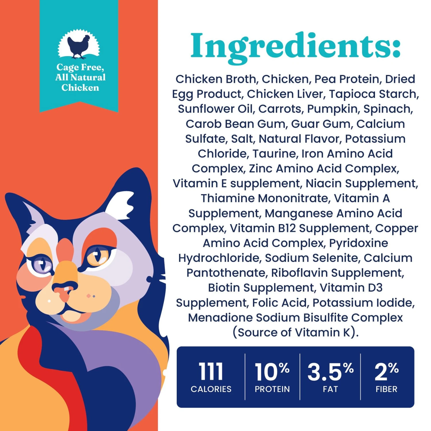 - Made with real chicken, chicken broth, chicken liver and vegetables including pumpkin, spinach and carrots.