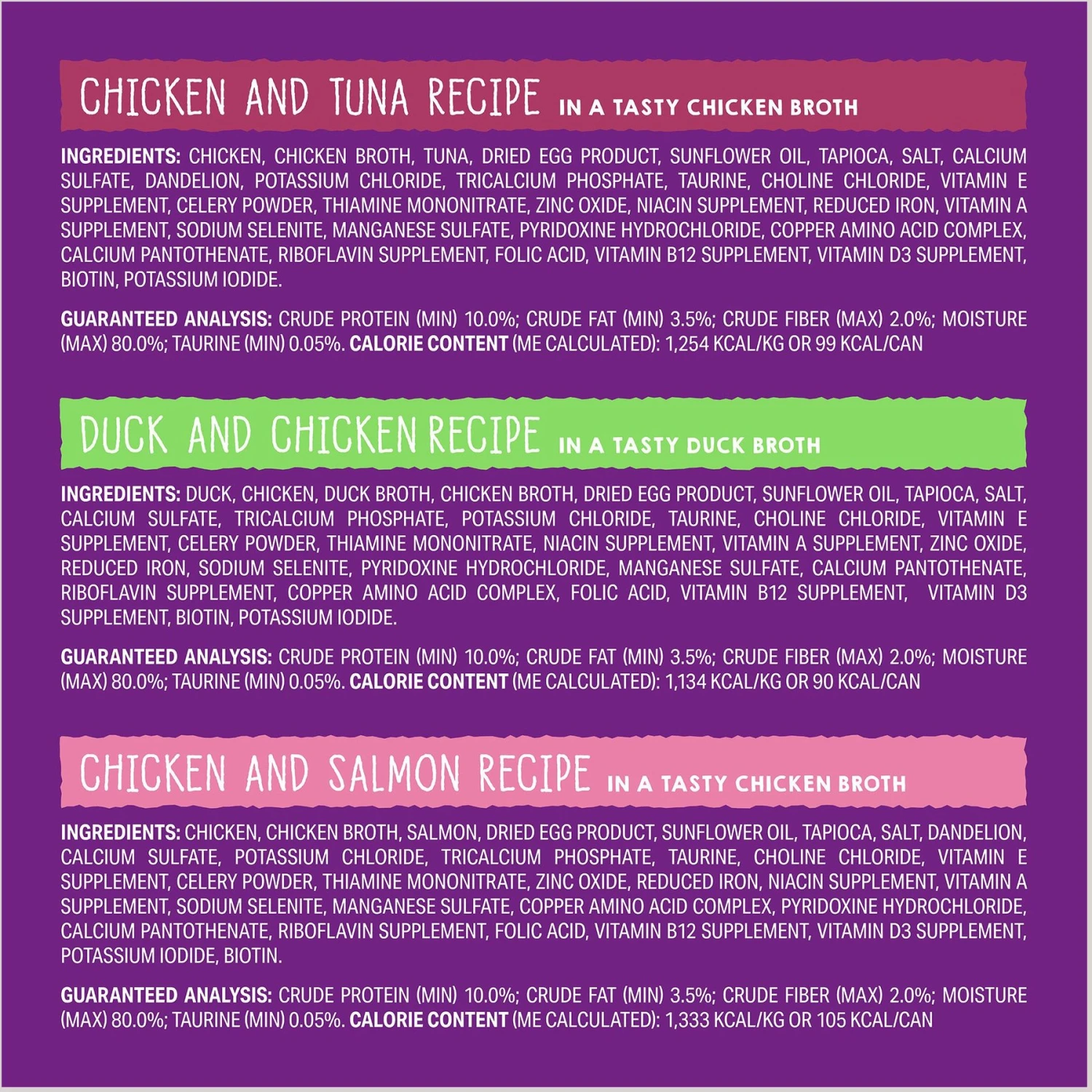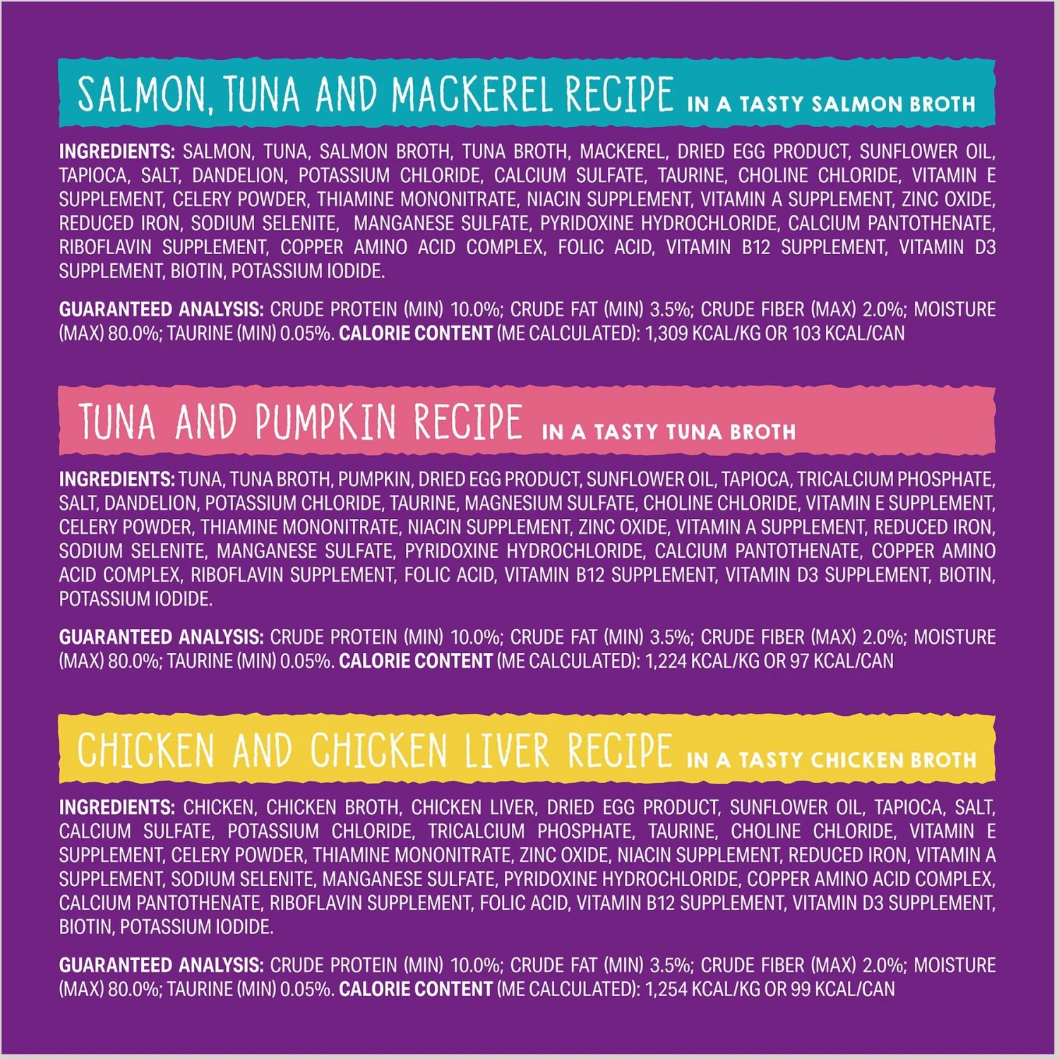 - These tasty pates are filled with animal proteins and soaked in irresistible, nutrient-rich bone broth—this variety pack offers two of each flavor, so your cat can find their favorite!