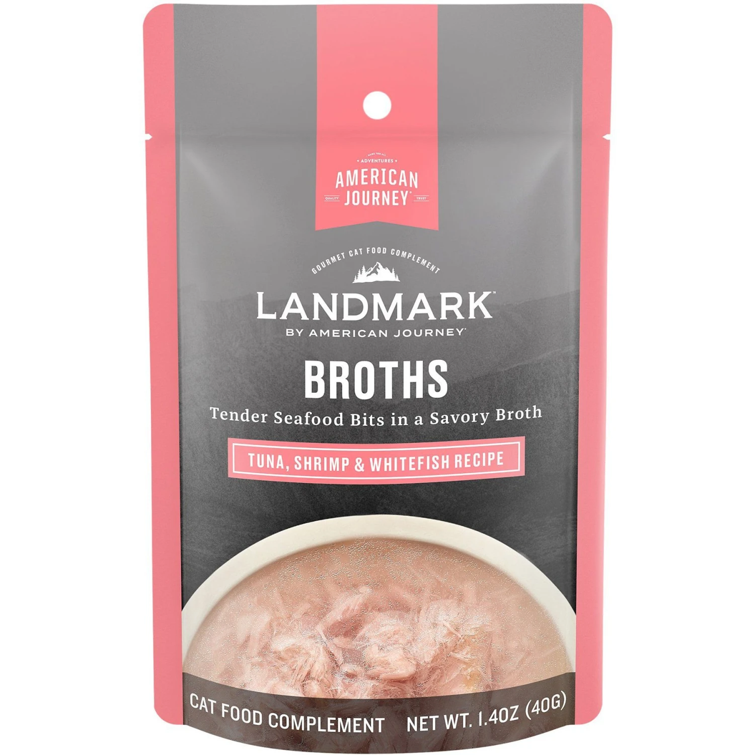 Tiki Cat Luau Velvet Mousse Variety Pack Grain-Free Wet Cat Food, 2.8-oz Pouch, Case Of 12 & American Journey Landmark Broths Tuna, Shrimp & Whitefish Recipe Wet Cat Food Complement Pouches, 1.4 Oz Case Of 16