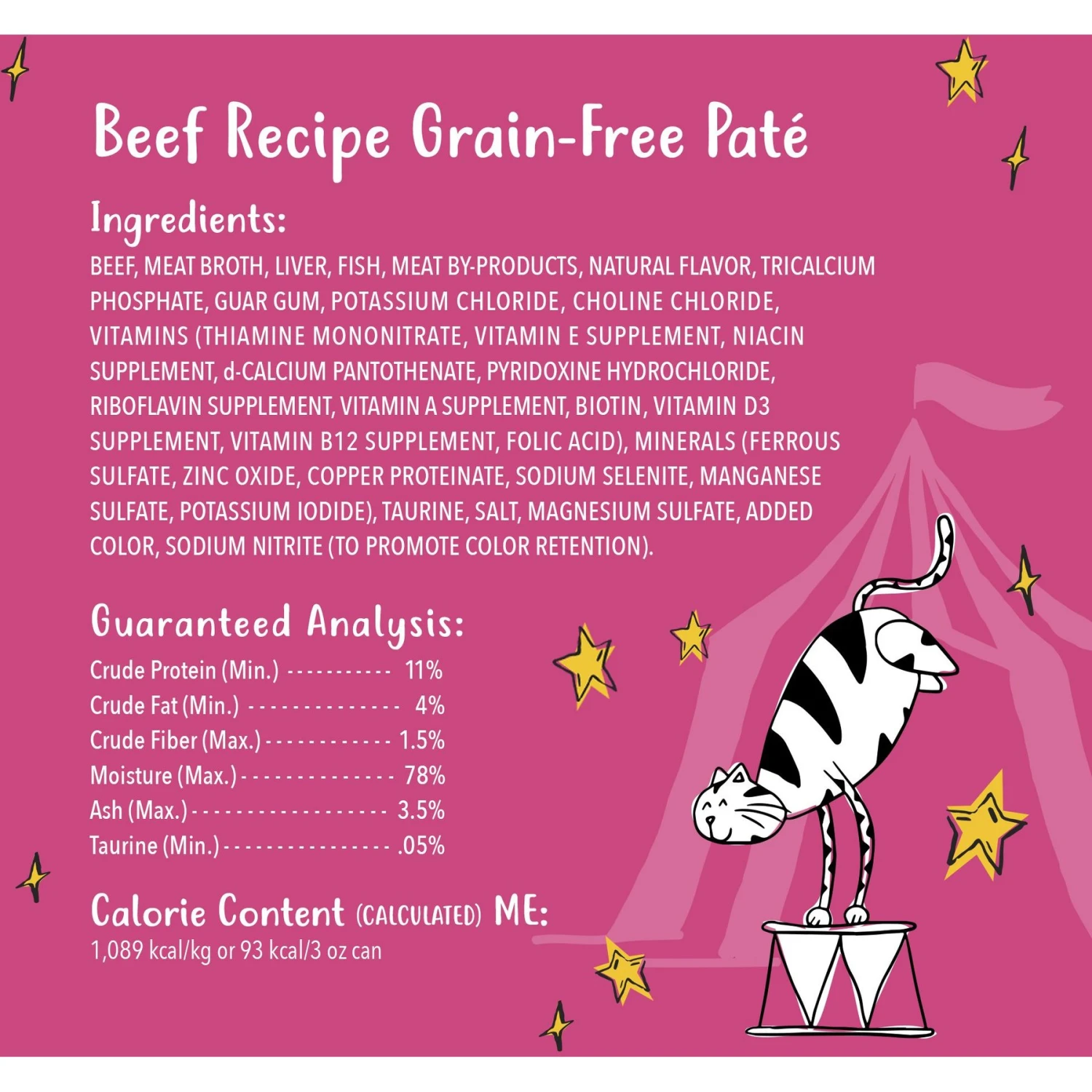 - Grain-free paté features real beef as the first ingredient for the protein and flavor cats crave.