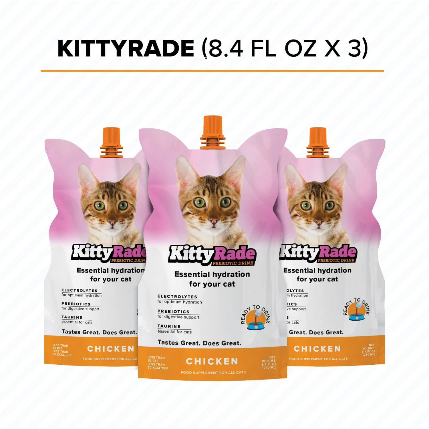 Tonisity KittyRade Isotonic Drink Chicken Flavored Liquid Digestive Supplement For Cats, 250-ml Pouch, Pack Of 3