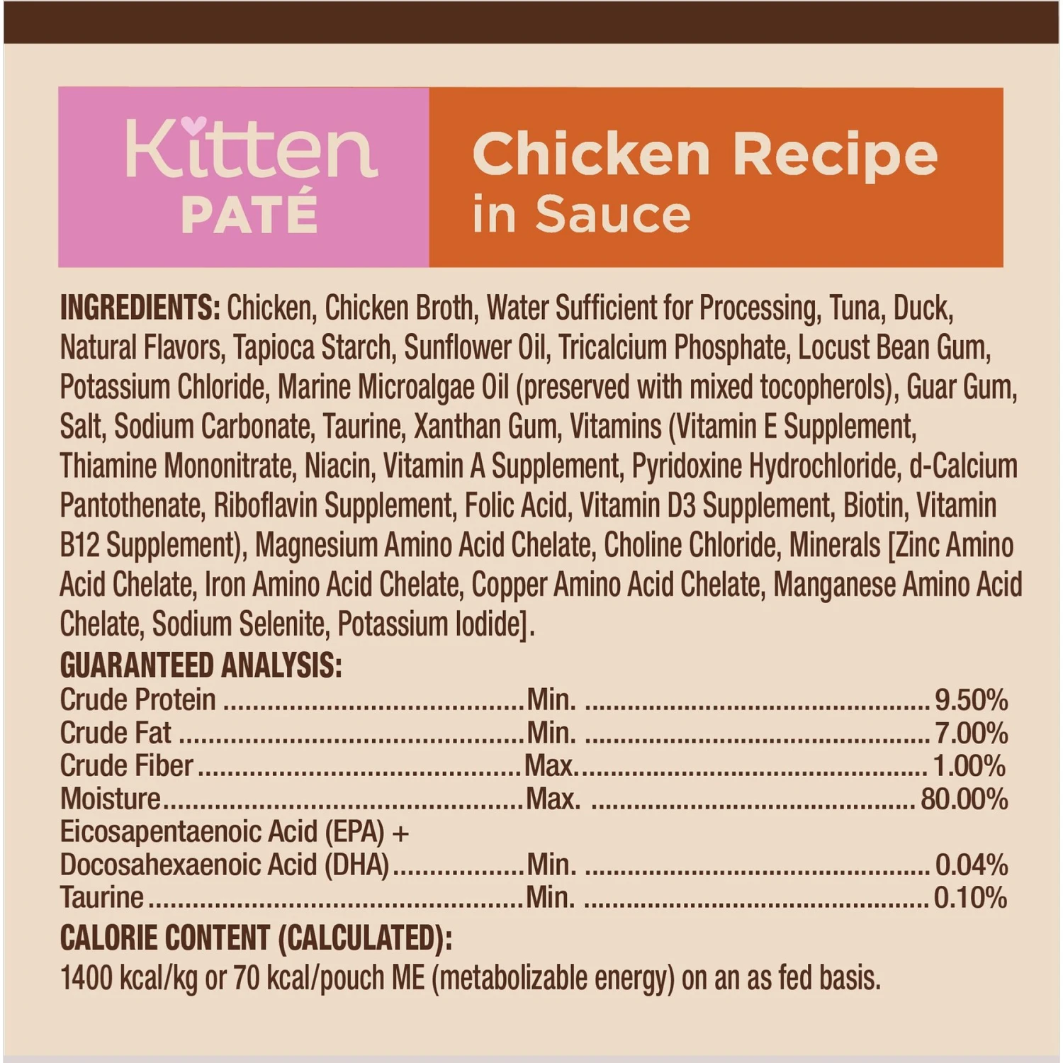 - This delecatable pate supports your kitten’s eye health with Taurine.
