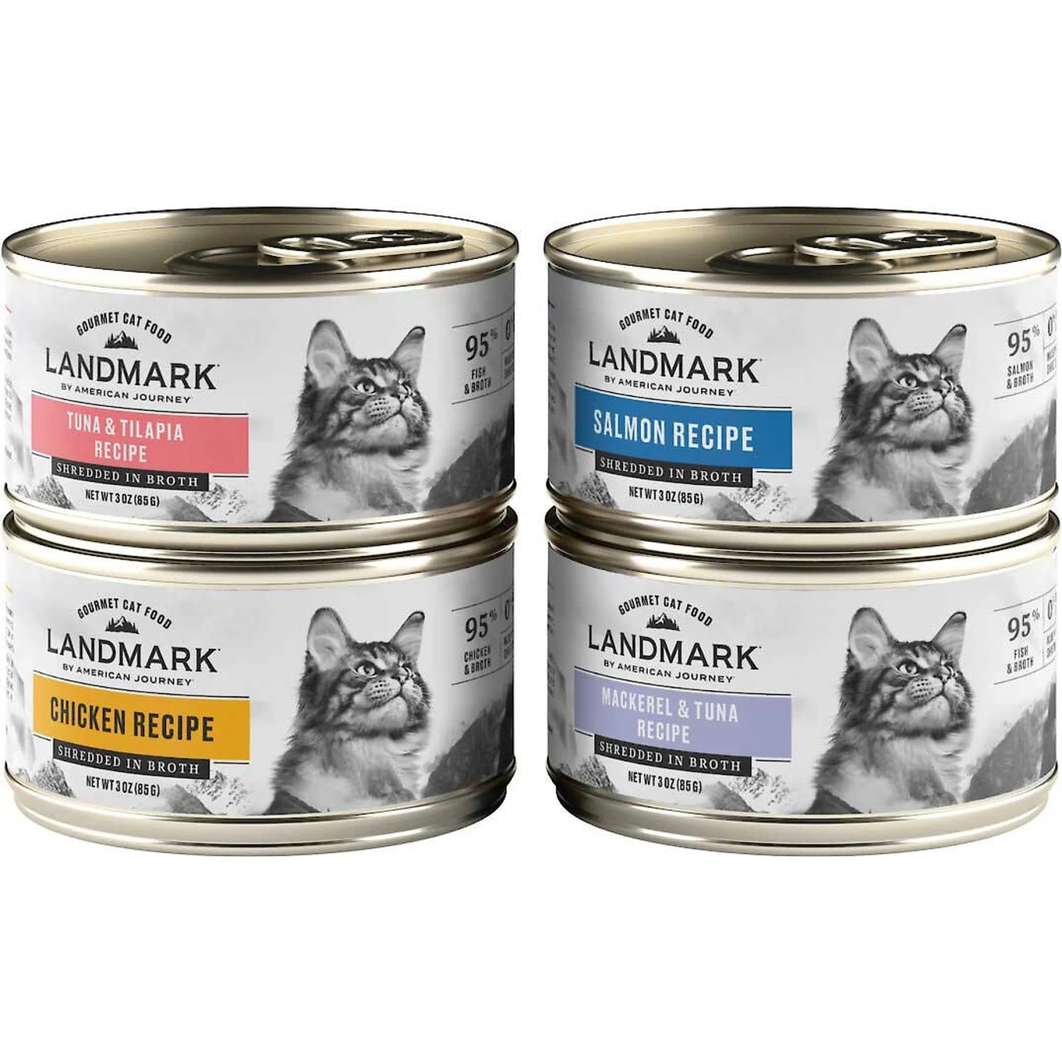 Weruva Cats In The Kitchen Cuties Variety Pack Grain-Free Canned Cat Food & American Journey Landmark Seafood & Chicken In Broth Variety Pack Grain-Free Canned Cat Food, 3-oz, Case Of 12