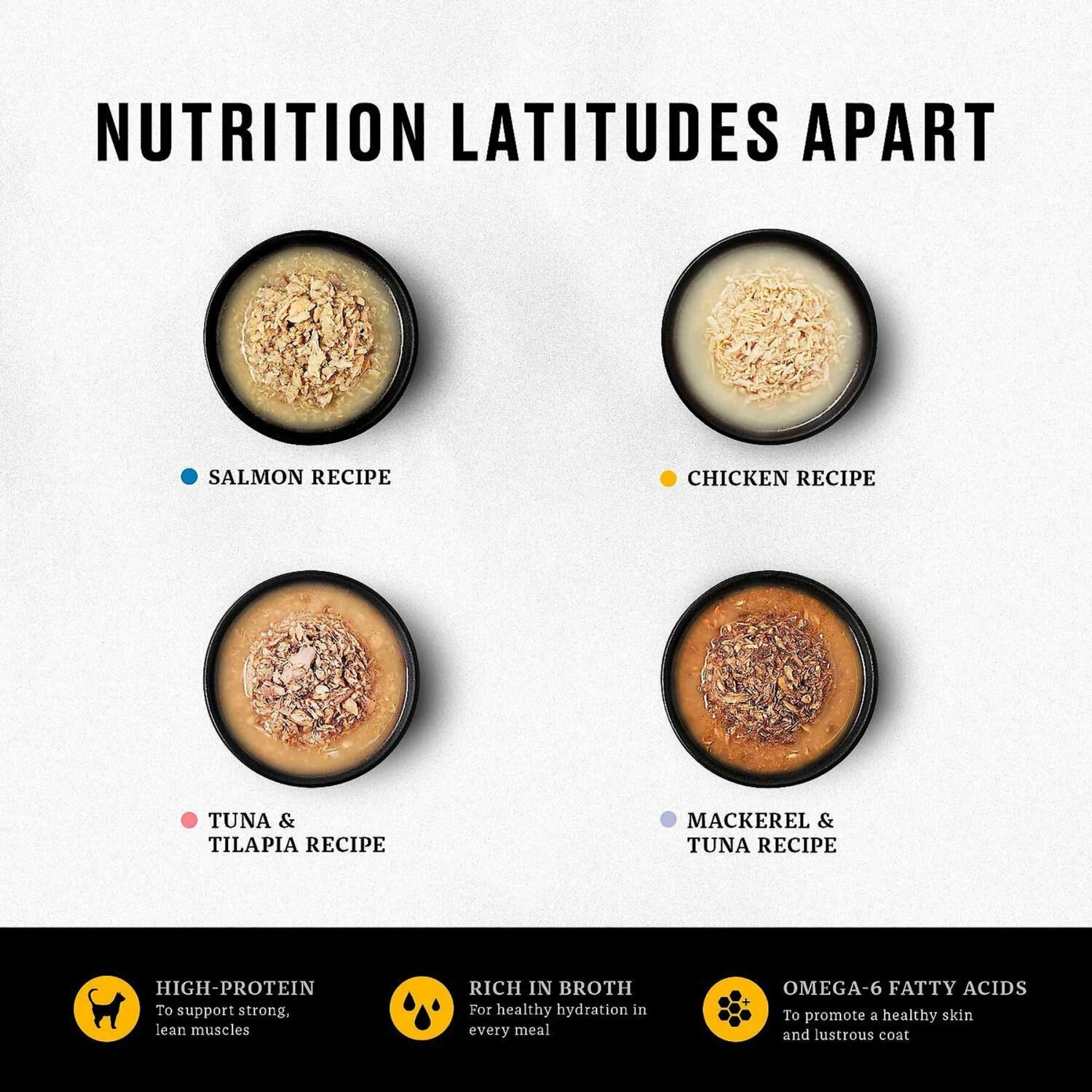 - Based on a prey-based, feline-appropriate diet with real, shredded seafood or chicken in a savory broth.