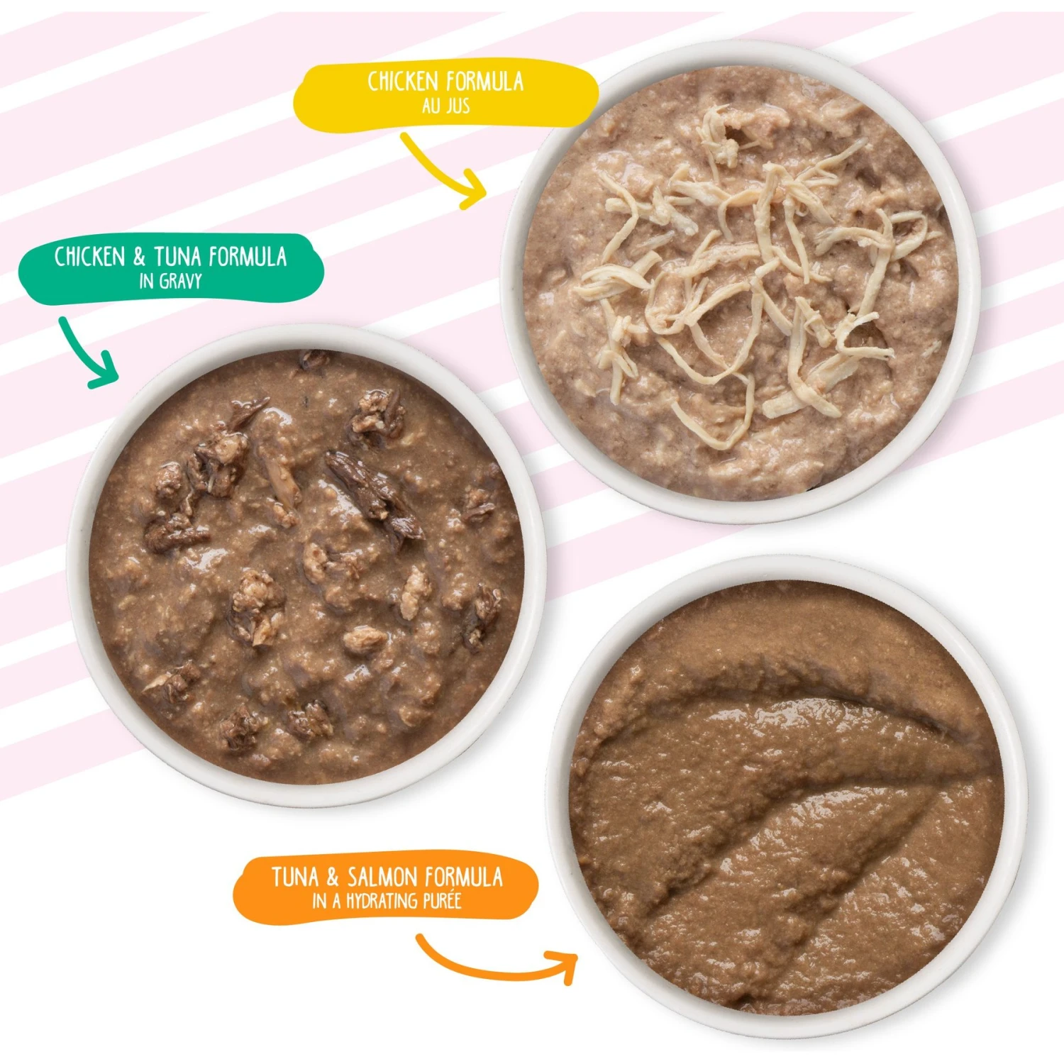 - The Kitten Can Jam variety pack features three yummy recipes—Chicken Au Jus, Chicken & Tuna in Gravy and Tuna & Salmon in a Hydrating Puree.