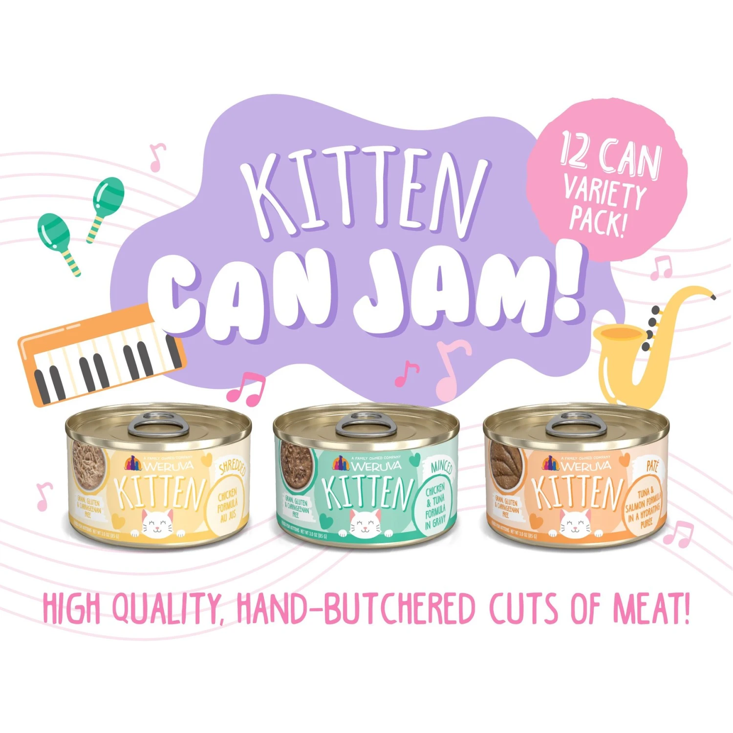 Be the first to review “Weruva Kitten Can Jam! Chicken, Tuna & Salmon Flavored Pate Canned Cat Food Variety Pack” Cancel reply